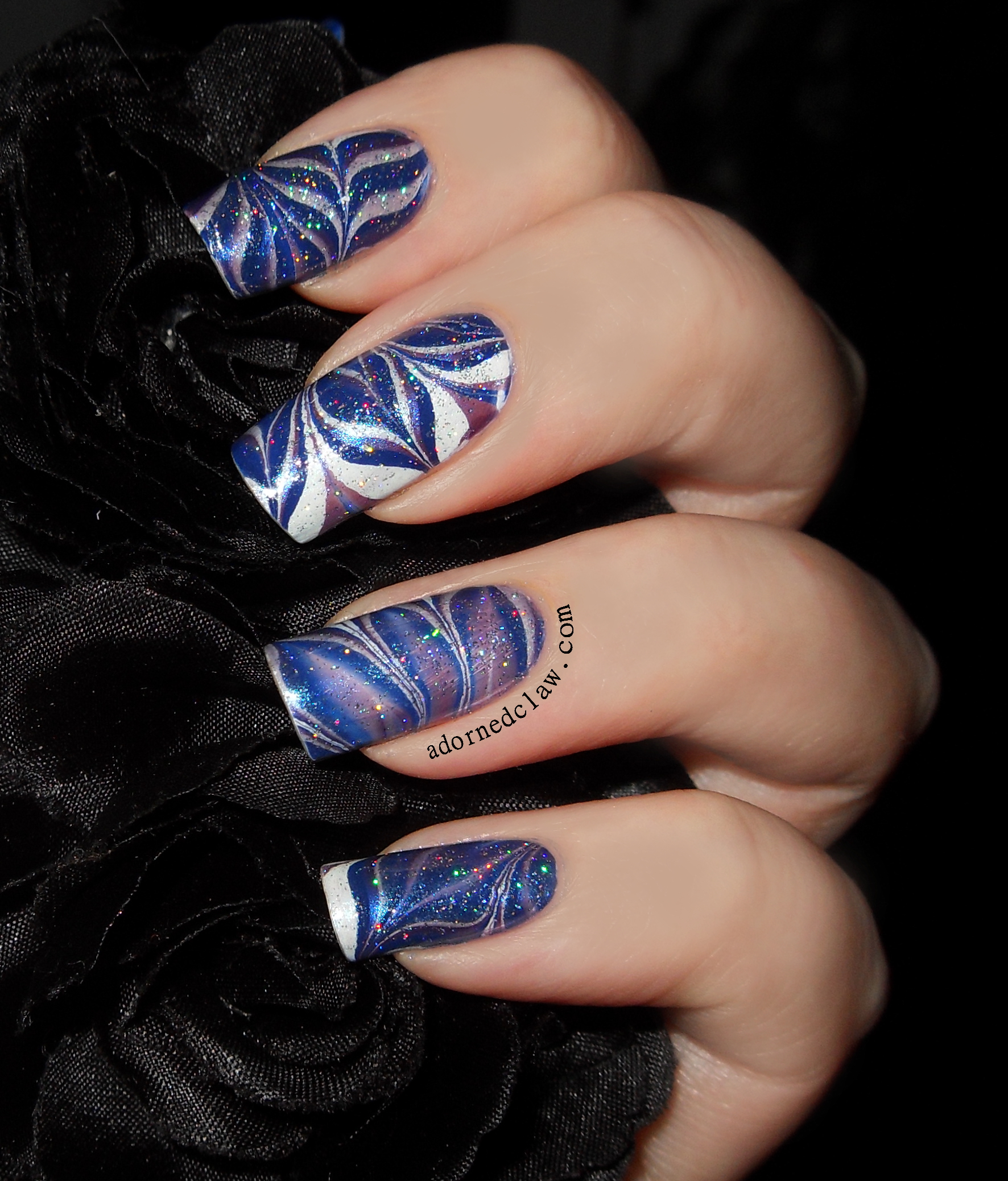 I actually had some time to do some nail art! Yay! 😀 So here is a very sparkly water marble!
