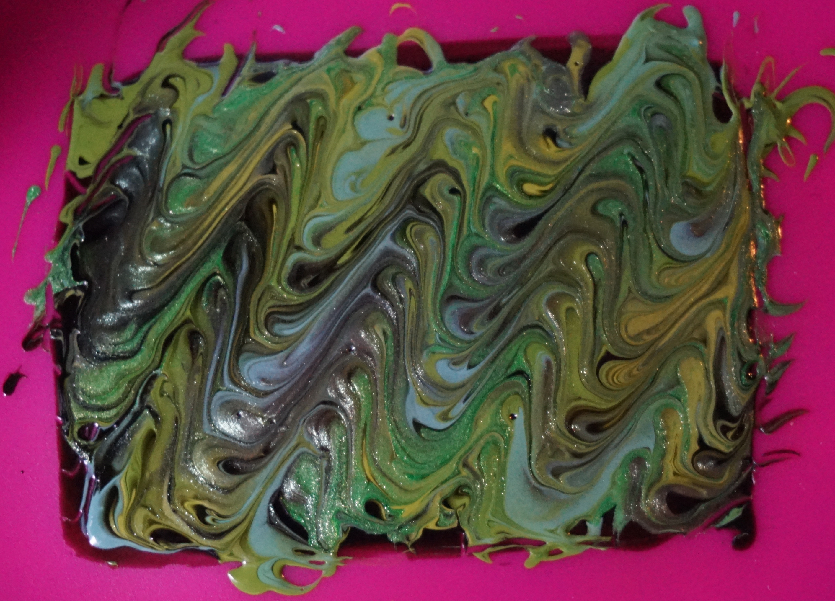 Instead of painting stripes I painted A big rectangle of the darkest polish then dripped the other colours onto it, and then used the comb to make the swirly patterns!