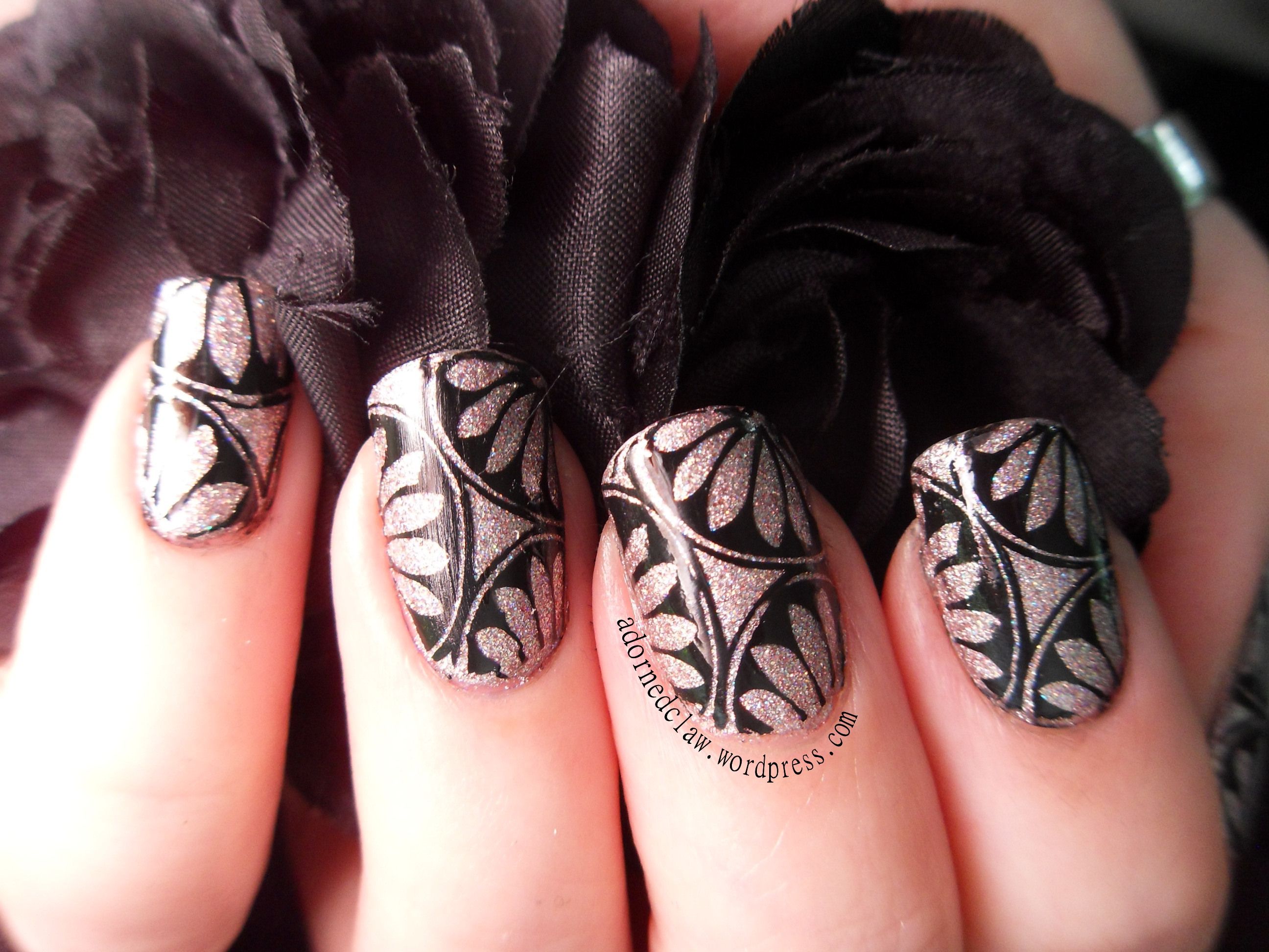 This took ages to dry even with fast dry top coat! but when it eventually was I used the Halloween stamping plate from Messy Mansion for the flies with Konad SP in Black. I finished it with one last coat of fast dry top coat from Color Club.