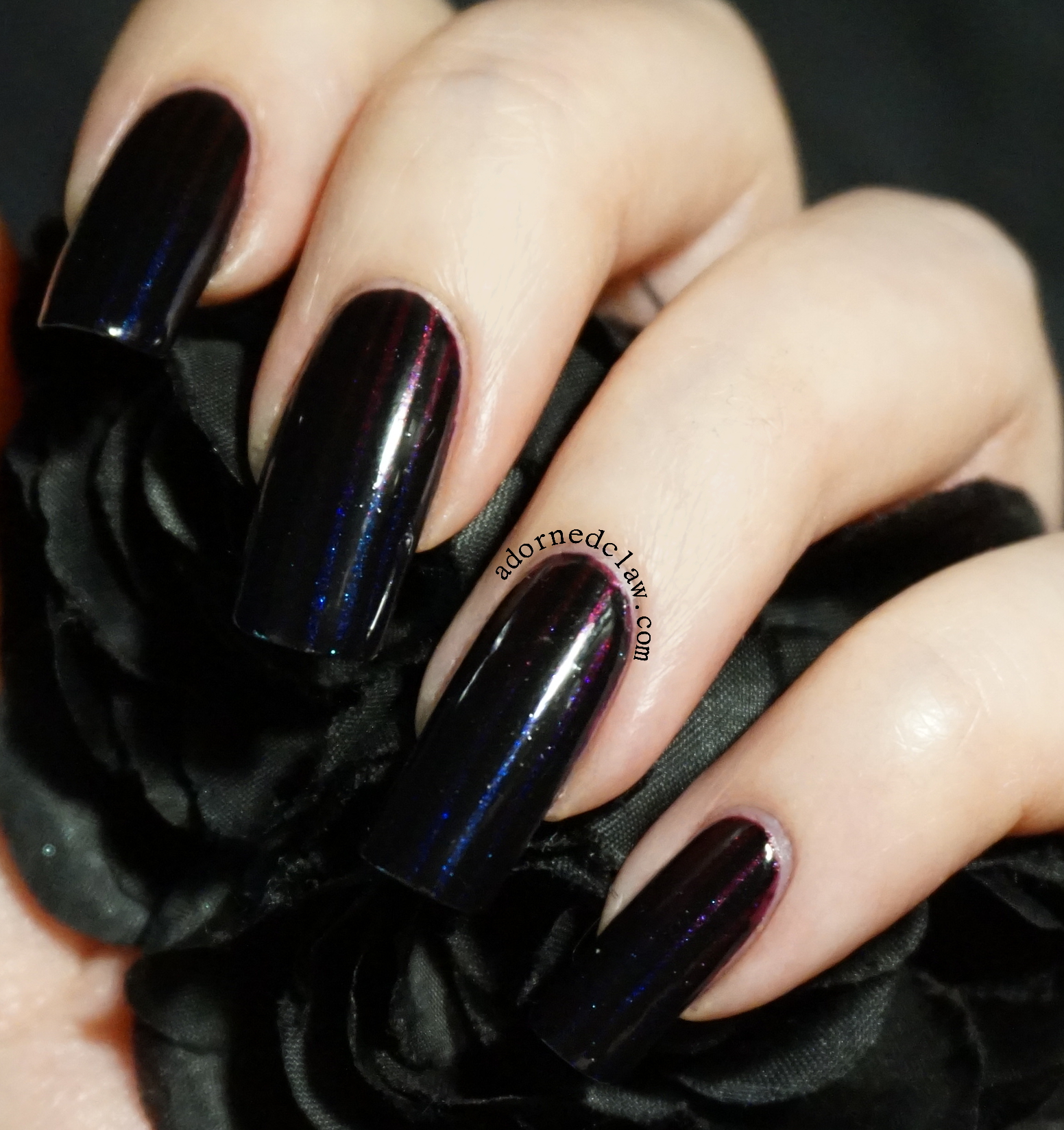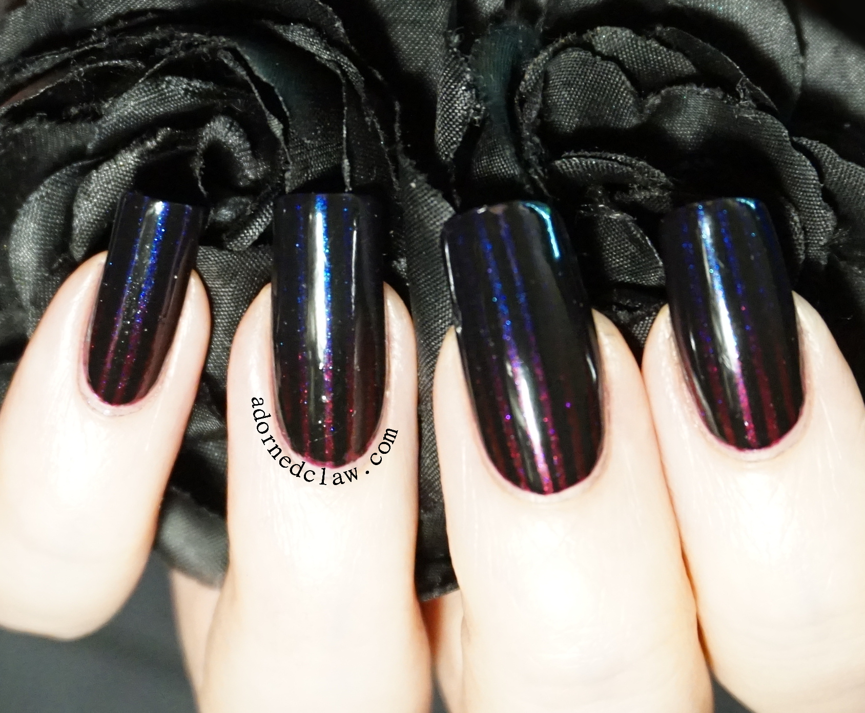 The ingredients in this one was actually quite easy to work out. just two polishes in this one, Sally Hansen – Pure Midnight and Jade – Estasy.