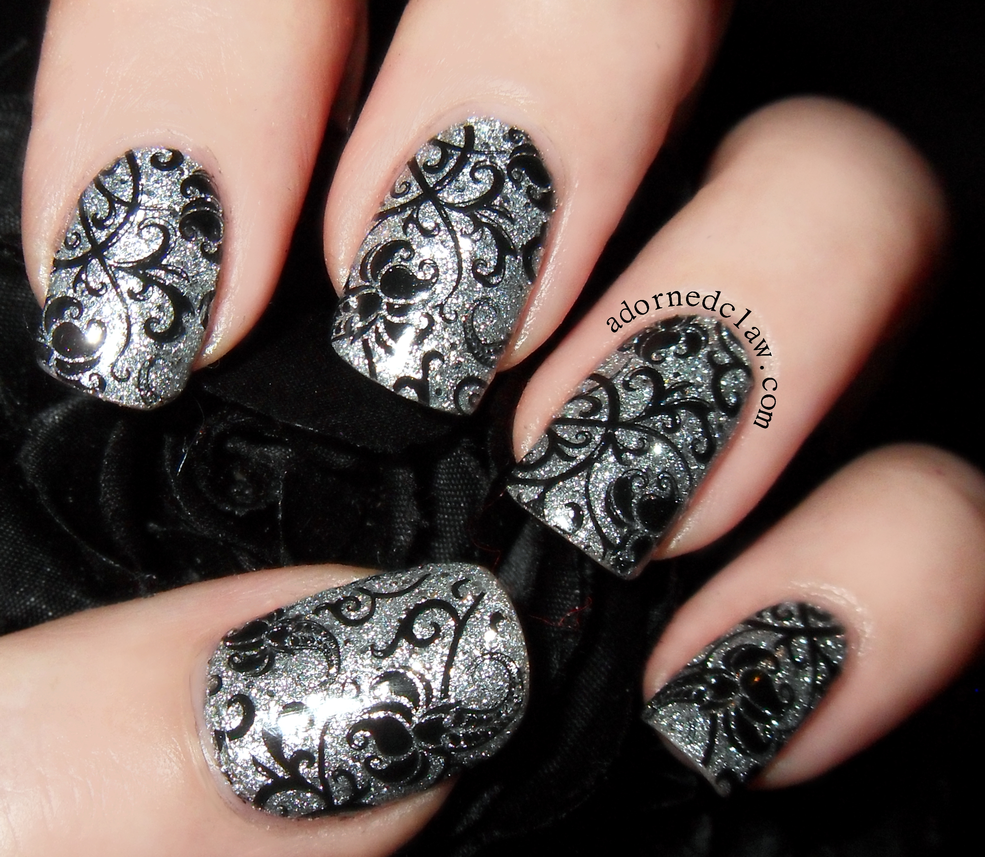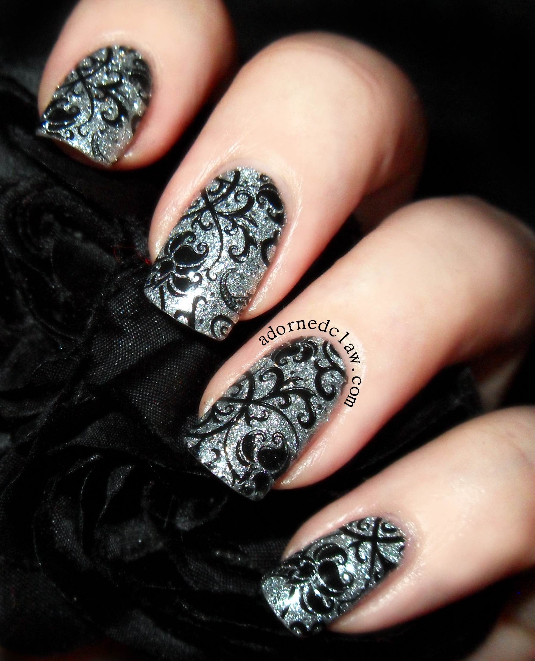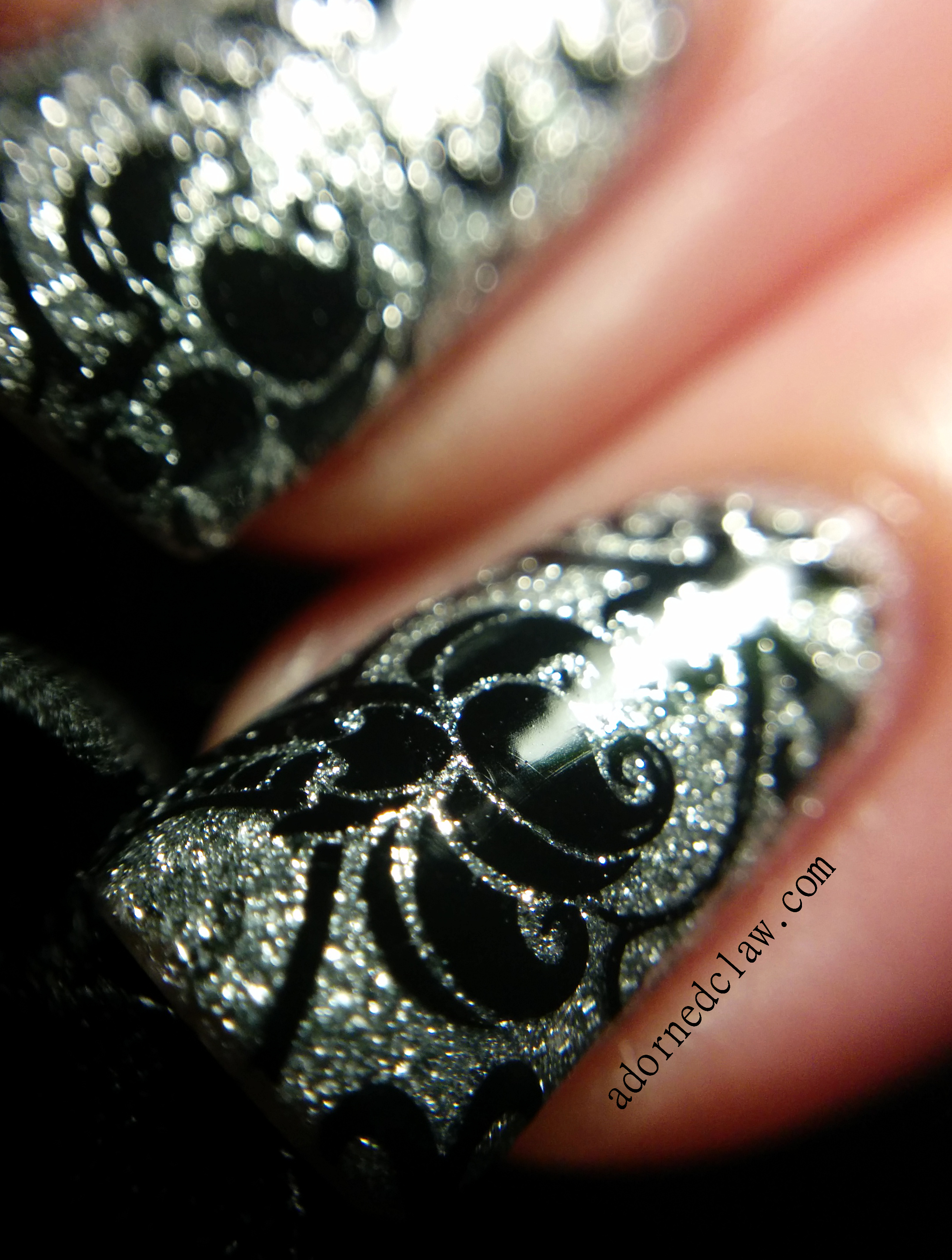 I used Stamping Plate BP-17 from Born Pretty, along with Desert Valley for the leadlighting. I’m so glad I have finally used this polish! I really wish I had read some reviews about the stuff before purchasing it, to say it’s not a nice polish would be a huge understatement! But a little bit of it works well for this 🙂