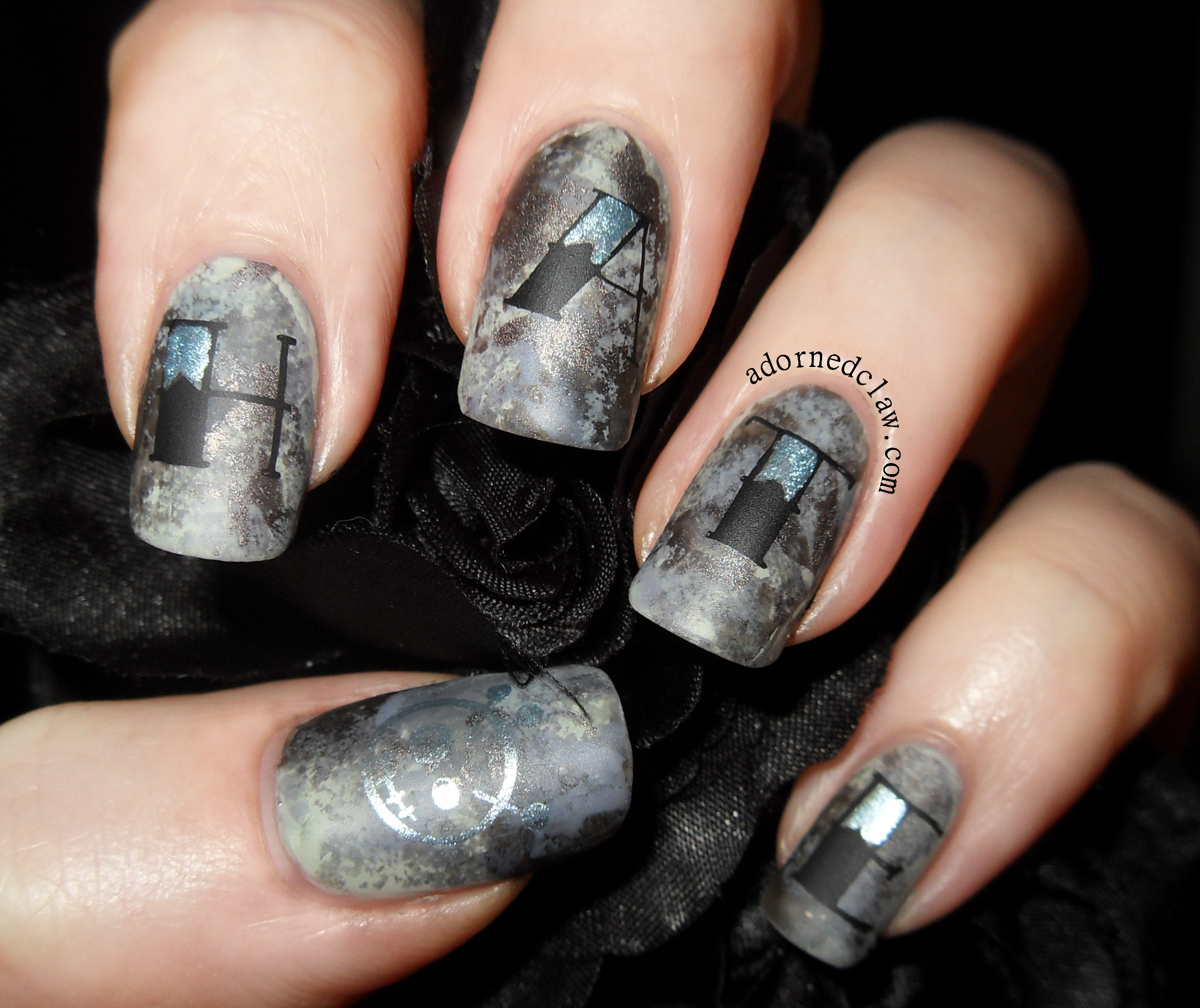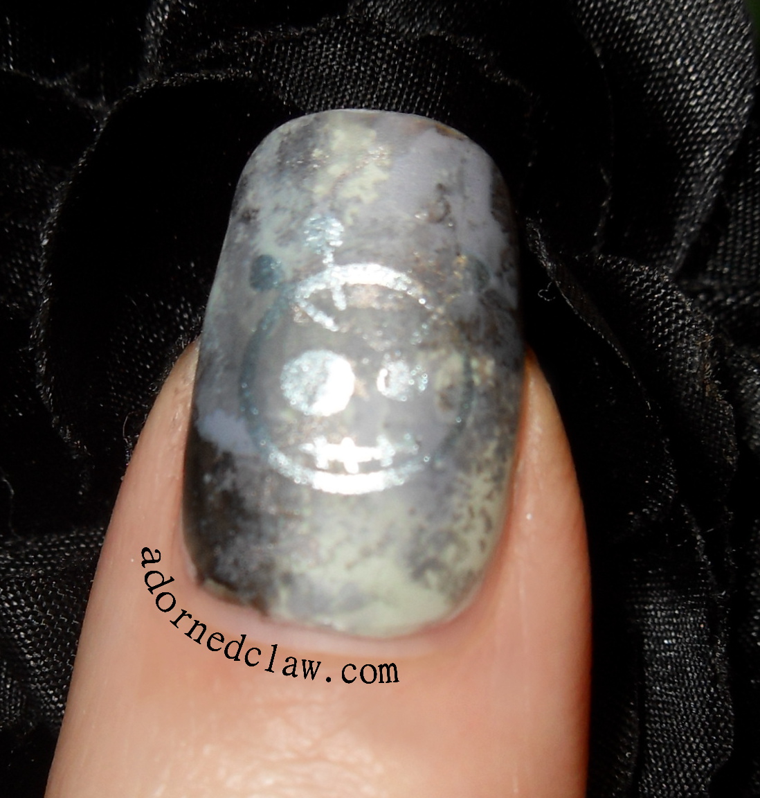 I started with A couple of coats of Shabby Drab from Color Club, Purple toned grey polishes make me very happy! and this one is no exception! 😀