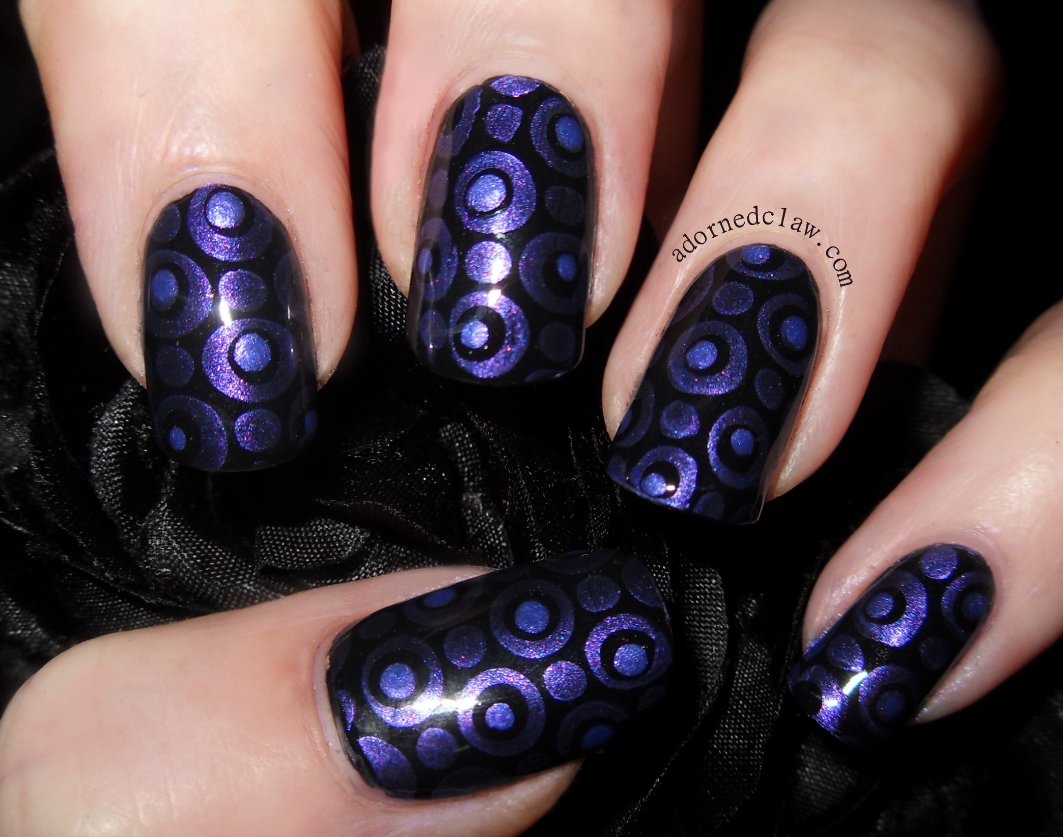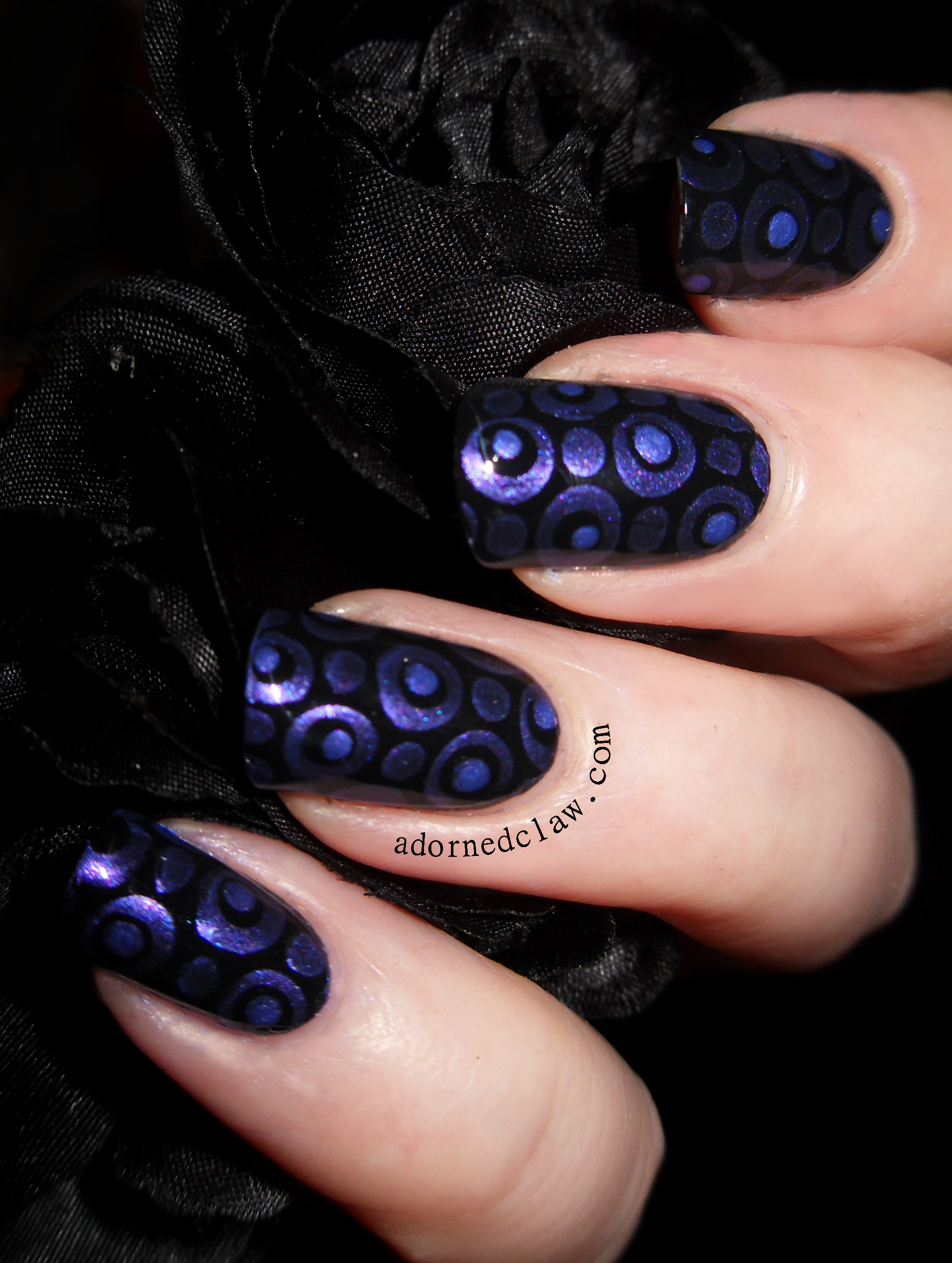 The black polish is very nice! it is opaque in one coat, it applied really easily and dotted over both the pink shades really well!