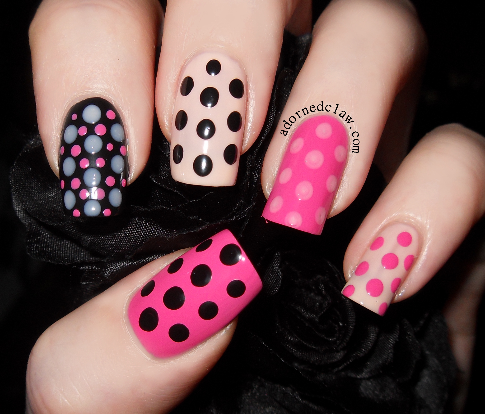 While I was going through my nail art box I found my dotting tools and realized that I haven’t used them for ages, so today I have pink spotty nails to show you! 🙂