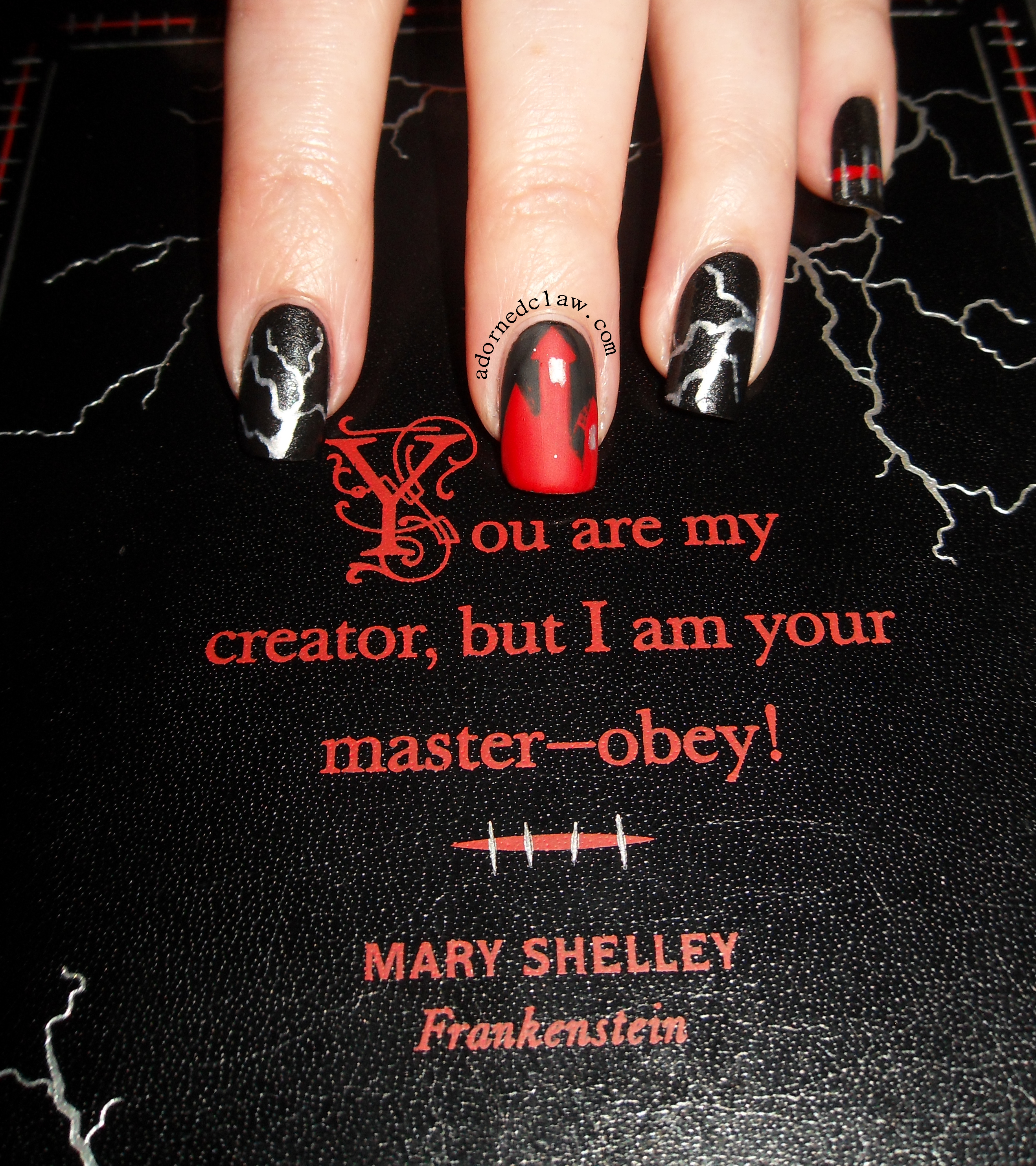 For the lightning and the stitches I used the silver nail art pen, I didn’t add any topcoat so I wouldn’t cover the texture of the leather polish.