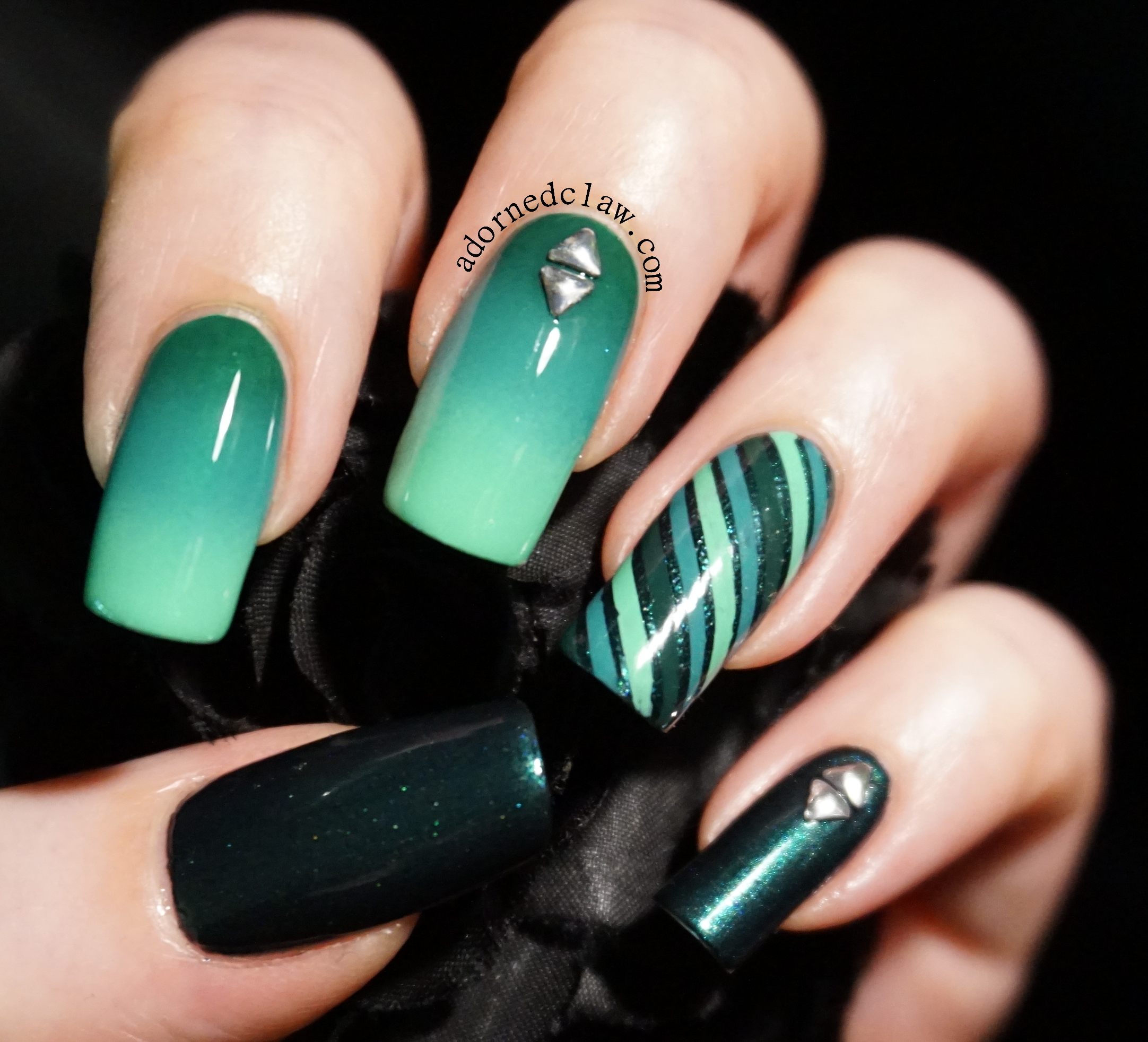 I was really in the mood for teal nails, but I really couldn’t decide between gradient or stripes, so I went with both! 🙂