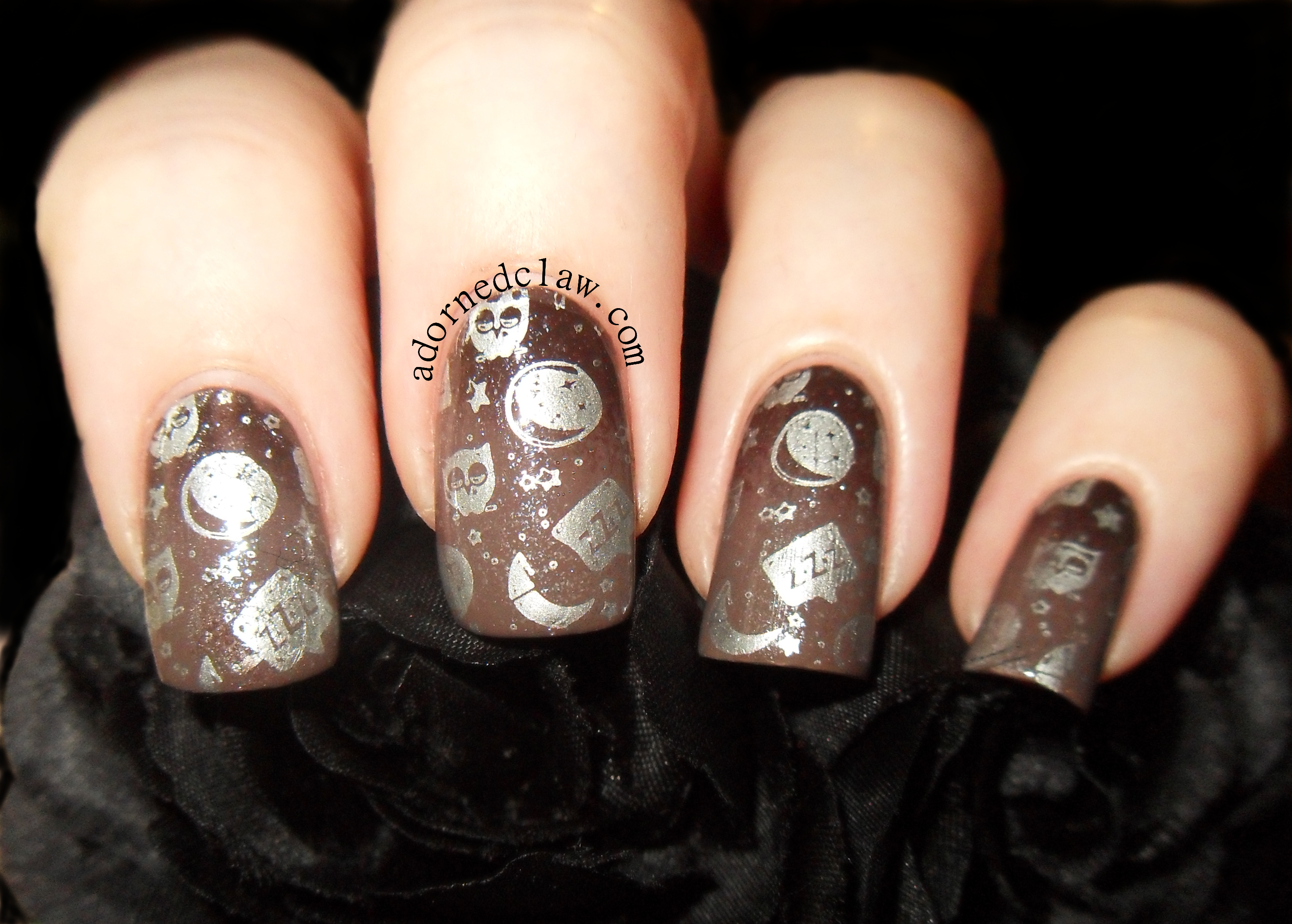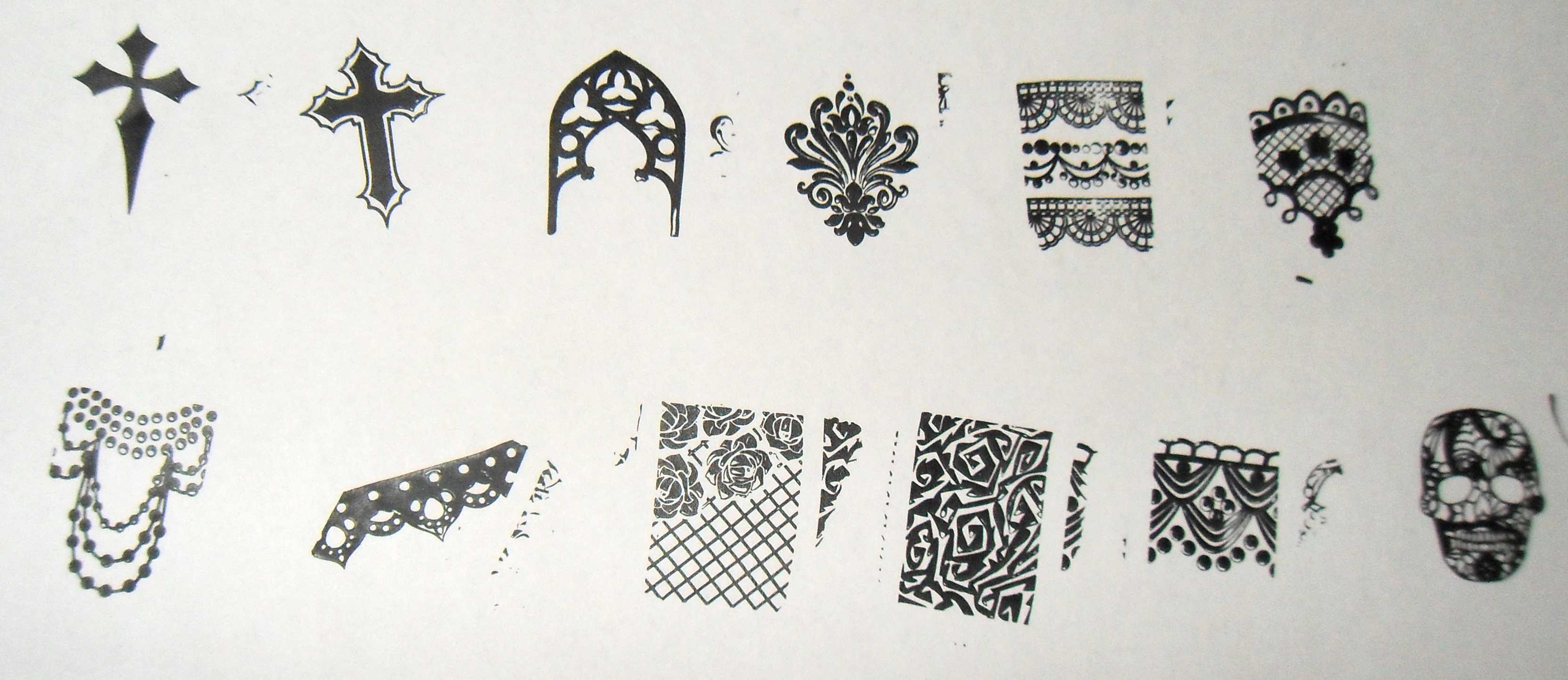 From the images on plate 3 I think the lace skull is amazing! I actually like all of the lace images from this plate. From plate 4 the images for me that really stand out are the text, tree and the crow. The only image I had a problem with stamping is the little cemetery, it needs a light touch with the scraper, it’s far to easy to scoop out the polish from the center of the hill.