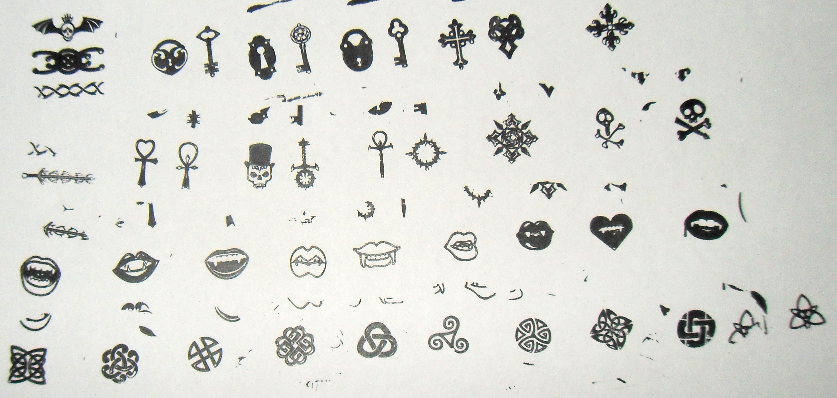 I really like the Celtic knots, I have a few ideas for those already. The ankhs and the skull in a top hat… Very Alchemy Gothic!